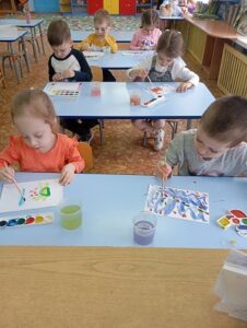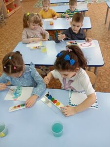 Ребята группы «Фантазёры » узнали на занятии, что такое узор, где его можно увидеть. На своих салфетках нарисовали красивые и яркие узоры.