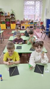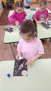 Ребята группы «Лучики» выполнили игрушку-аппликацию «Космические дали»