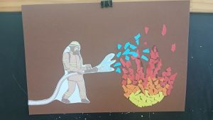 А также на занятии по аппликации помогли пожарным укротить злой огонь.